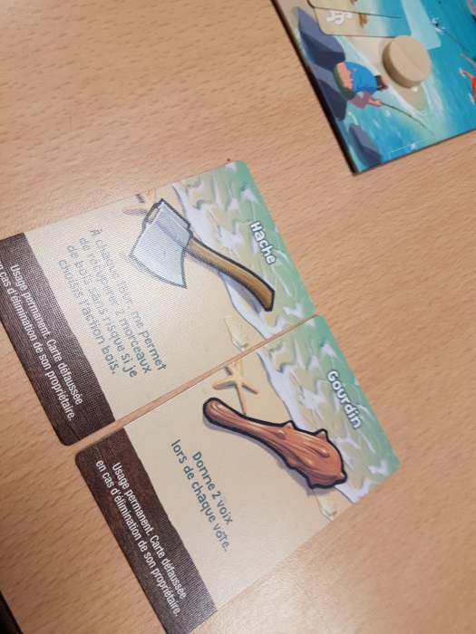 En fin de tour, on doit s’assurer qu’il y a assez de nourriture et d’eau pour que chacun puisse survivre. Sinon, un vote à lieu pour savoir qui sera sacrifié. L’occasion idéale de sortir son arme à feu et ses balles si les votes vous sont un peu trop favorables ! 😉