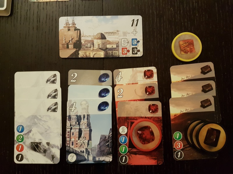 - 1 jeton « Or » vaut désormais 2 jetons d’une même couleur lors de l’achat d’une carte,