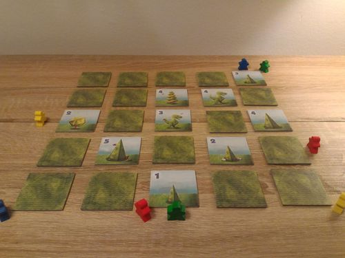 Vous allez devoir avoir le plus de points ! mais c pas si simple d’en obtenir. A votre tour de jeu, vous placerez un de vos visiteurs (meeple) sur le côté d’un jardin topiaire (vous savez les superbes arbres bien taillés?) et vous retirez une tuile face cachée du plateau pour en placer une de votre main face ouverte. L’objectif étant que votre visiteur voit le plus d’arbres possibles. Mais les plus grands arbres cachent les plus petits donc faudra faire en sorte de mettre des tuiles arbres de niveau 1 devant et les plus grands derrière. Et si en plus votre visiteur voit des arbres qui se ressemblent alors là c’est jackpot 🙂