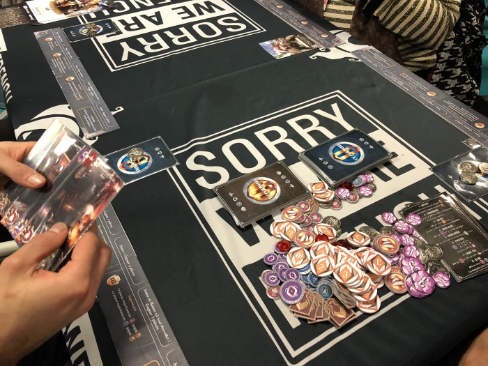 Comme vous pouvez le constater, on a très peu joué. Problème d’effet de groupe où chacun a envie de faire un truc et on finit par tourner en rond, en plus les tables n’étaient pas forcément dispo et puis le dimanche j’ai préféré faire un peu le tour des stands.