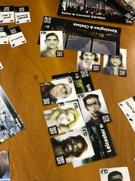 Mais il y a aussi des choses qui diffèrent ! Première chose les personnages sont ici personnifiés par de jolies cartes ! Sympathiques ou pas en tous cas mettre un visage un personnage est plus immersif. Exit les long paragraphes très narratifs de SDC où ceux qui ne lisent pas doivent se concentrer pour imaginer les suspects.