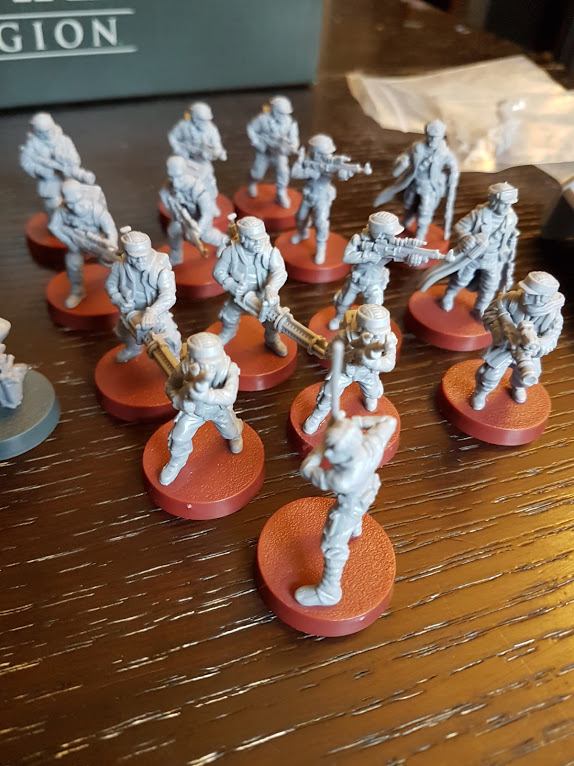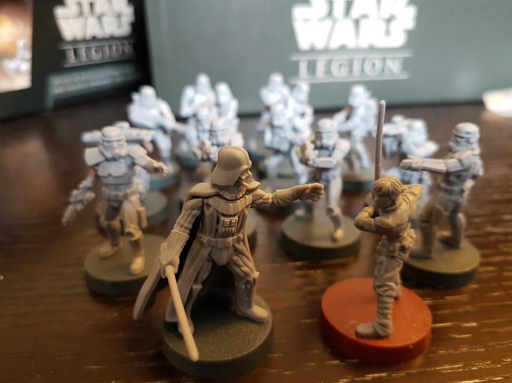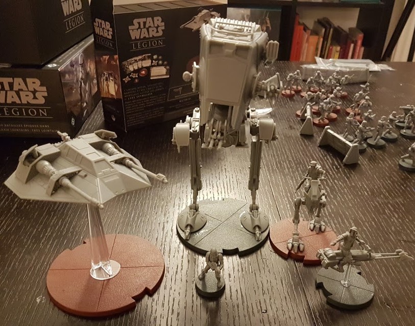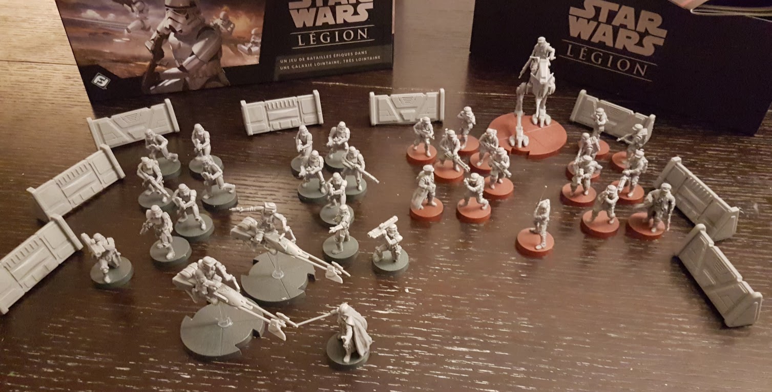 S’il y a bien un domaine où votre humble serviteur ludique (moi en l’occurrence) ne s’y connait pas beaucoup, c’est bien celui des jeux de figurines à base d’escarmouches où l’on déplace des brouettes d’armées assemblées et peintes avec amour. Ici, point de plateau ni de case à parcourir : on crée ses propres aires de jeu et l’on déplace ses troupes à l’aide de gabarits plus ou moins grands pour en découdre avec son adversaire à coup de jets de dés dévastateurs ! Dans ce domaine, le maître étalon absolu depuis des lustres se nomme « Warhammer 40K » édité par GamesWork Shop. Mais voilà qu’un concurrent de taille vient titiller le colosse du jeu de figs à assembler sur son propre terrain. Il s’agit de FFG qui propose désormais un jeu d’escarmouche avec une licence en or massif : « Star Wars : Légion » ! Le but affiché de ce nouveau jeu phare de FFG est justement d’accompagner les joueurs de jeux de plateau vers le monde parfois intimidant du jeu de figs à assembler. Pari gagné ?