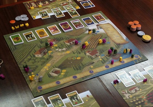 Pour être honnête je n’ai joué pour l’instant qu’avec la version de base et déjà le potentiel est énorme, la lutte pour les emplacements de nos ouvriers est hardue (même a 2 joueurs), les stratégies divergent en fonction des cartes main d’œuvre, et aussi en fonction des différents cépages que nous allons planter. De plus, le jeu est d’une réelle simplicité à expliquer même s’il s’adresse à un public expert. Tout est très clair sur le plateau. Les différents éléments du jeu sont de très bonne qualité, aussi bien les cartes épaisses que les différents meeples et bâtiments du jeu. Bref je ne regrette pas mon achat.