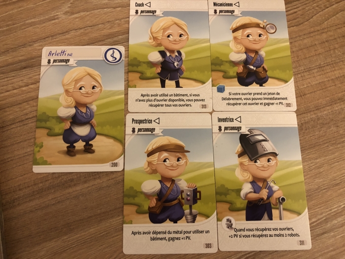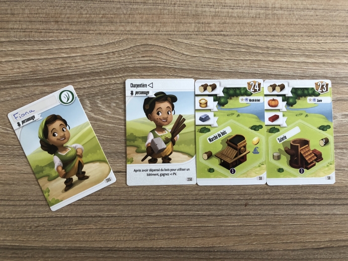 Ouf ! J’arrive à ouvrir ma 1ere caisse qui correspond à 3 cartes et je découvre mon personnage avec de nouvelles facultés (pour la partie suivante…), un bâtiment à construire, etc… Et j’entame la course aux PV 🙂