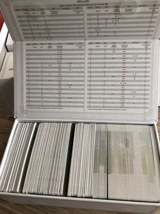 Les règles du jeu commencent par vous demander d’ouvrir la boite INDEX (la plus lourde qui contient au moins 400 cartes).