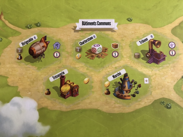 • chaque joueur pose un ouvrier et fait l’action du bâtiment (coût/gain). Si le bâtiment était déjà occupé, le meeple présent est rendu à son propriétaire.