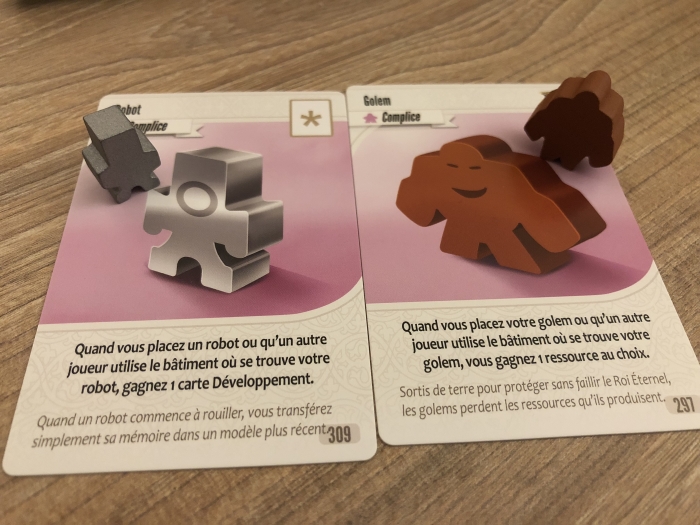 - robot => on les envoie sur un bâtiment libre de notre quartier et quand un adversaire se met dessus on reçoit des cartes de développement (comme les cartes objets, les cartes assistants…)