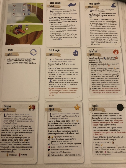 La lecture du livret nous pousse ensuite à lire certaines règles du jeu (pas toutes). Le tour d’un jeu se traduit ainsi :