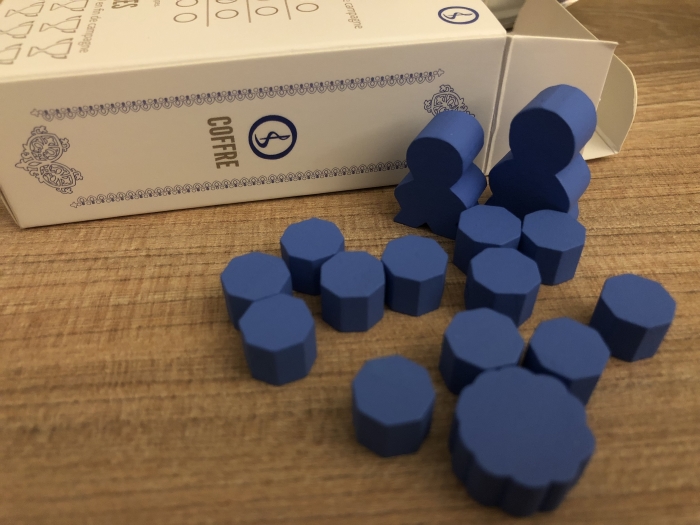 • des cylindres en bois à leur couleur (l’influence) + un jeton en bois pour le score