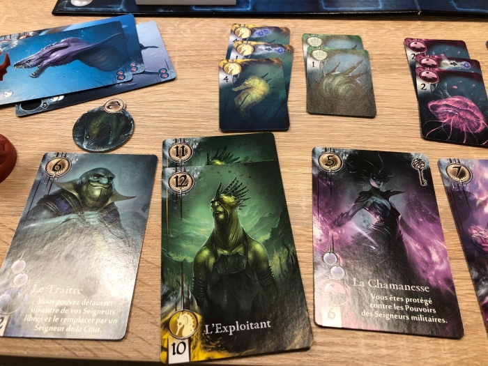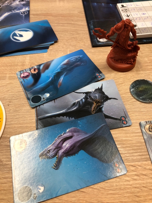 Je joue le plus souvent sans extension (j’avoue) sauf quand c’est Bruno et Charles qui gèrent et sauf quand c’est Pillards ou 7 wonders Duel (le reste, j’avoue je joue sans). Beaucoup disent que les extensions sont une plaie dans les jeux car les jeux de base passent pour des jeux qui ne sont pas finis. Et bien moi, j’aime attendre des extensions qui subliment le jeu. Elles permettent de relancer l’intérêt pour un jeu qu’on connait par cœur et qu’on souhaiterait jouer différemment. Et c’est le tour de force réussi par nos deux auteurs : sublimer Abyss !!! Ce jeu a toujours été un coup de coeur pour moi et les deux extensions sont devenues inévitables et obligatoires à chaque partie sauf quand je fais découvrir le jeu.