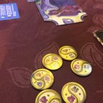Enfin, on dépose 5 amulettes entre chaque adversaires. Chaque amulette représente de symboles qu’il faudra défausser en une seule fois pour réclamer l’amulette. On attendra en effet le Nirvana en collectant 5 amulettes!