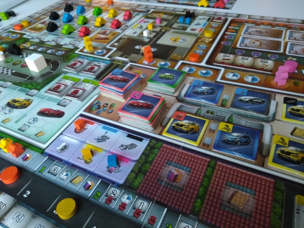 Système de fin de semaine et de réunion intelligent, la fin de la partie n’est pas la même dans un cas et dans l’autre. En réunion, on sélectionne les objectifs sur lesquels on veut marquer des points en fonction des sièges gagnés à la sueur de notre front. A la fin de la semaine, on marquera sur les voitures dont le design a été amélioré dans notre garage. Plus les joueurs ont investi dans un type de voiture, plus elle a de valeur en points.