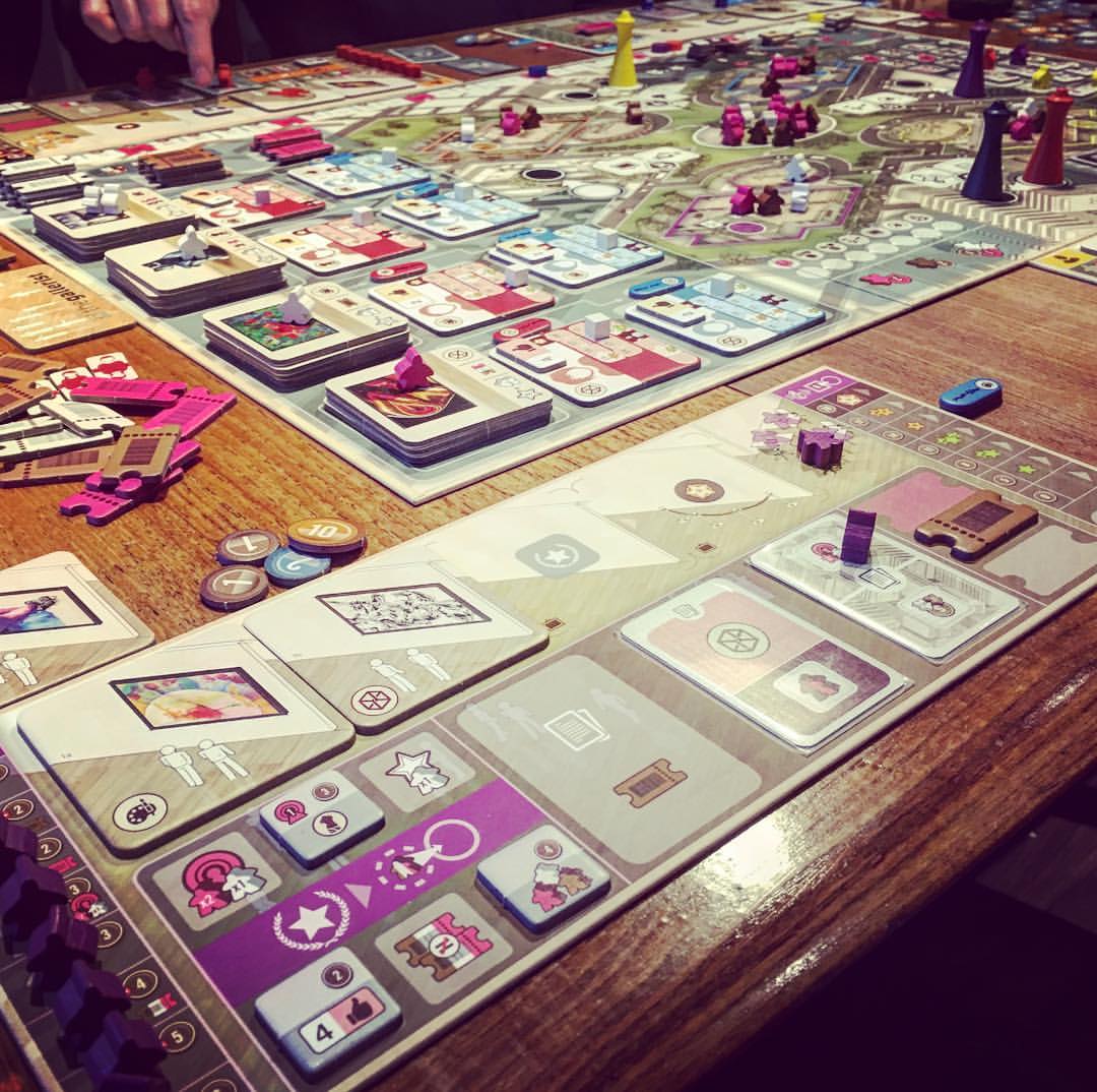 Mécanique : pose d’ouvriers sur le plateau central pour déclencher une action principale accompagnée d’une éventuelle action secondaire. Si un autre joueur était présent, il est éjecté et peut soit faire une action secondaire soit dépenser de la renommée pour faire une action principale. Lorsque l’on bouge son galeriste, on peut laisser un assistant à la place qui lui aussi pourra se faire éjecter. On peut donc habilement gagner des actions de cette manière.