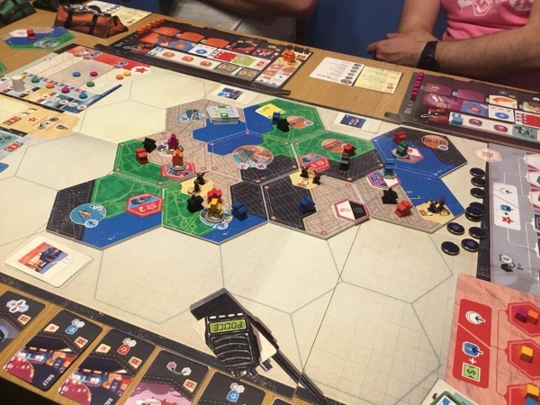 Les ressources à gérer sont l’argent, les ressources technologiques, les permis de construire, les scientifiques. C’est moins que pour beaucoup de jeux de Lacerda mais c’est assez pointu.