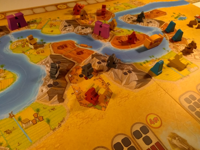 Il se joue en 4 manches, qui correspondent à 4 parties du Nil que la barge funéraire du Pharaon remonte. Sur les berges, des champs, des carrières, des mines et des cités dans lesquelles les joueurs pourront au choix placer des ouvriers le temps du tour pour récolter des ressources ou construire des bâtiments qui y resteront définitivement (les rendant indisponibles pour les récoltes) et qui rapportent des points.