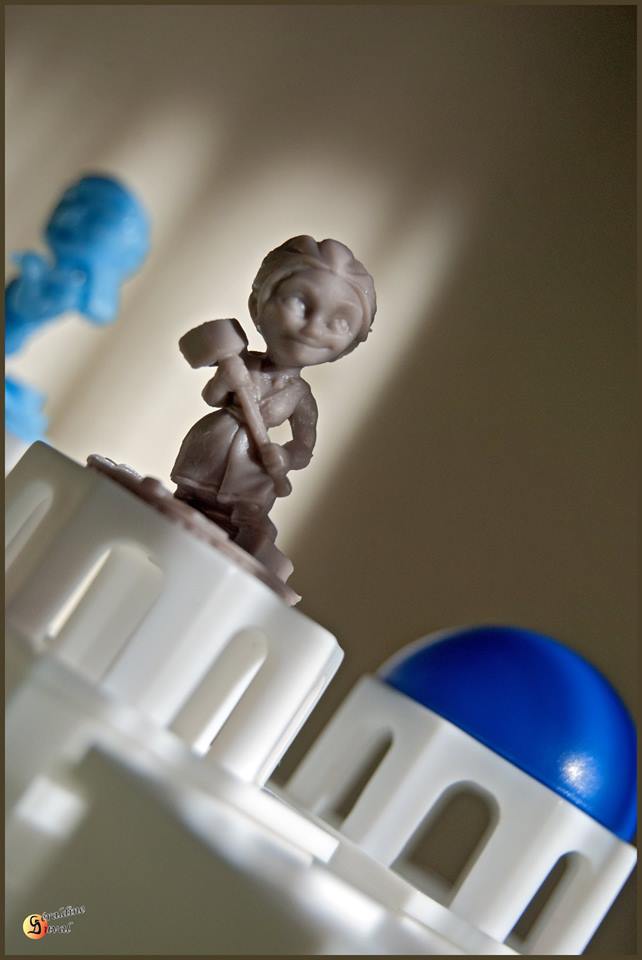La règle tient en quelques mots : A son tour, on déplace un de ses bonhommes d’une case et on place une pièce de bâtiment sur un espace adjacent ! On peut monter sur les bâtiments mais seulement quand il y a un différentiel de 1 étage max entre son bonhomme et le bâtiment ! Le but est d’être le 1er à avoir un bonhomme au 3e niveau !