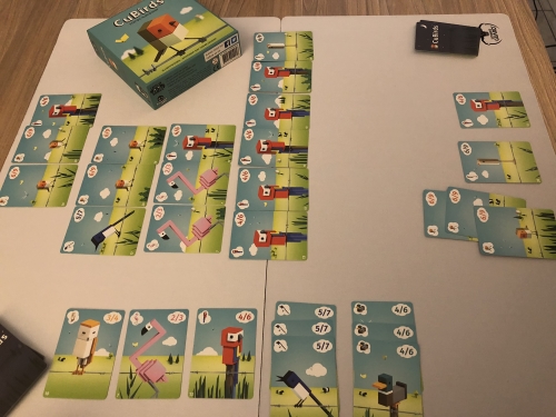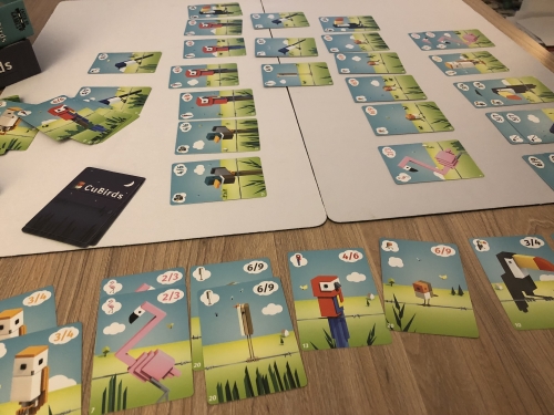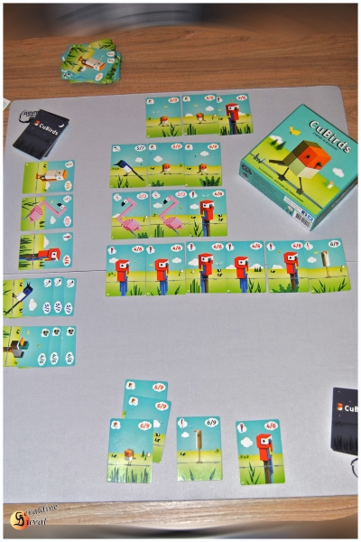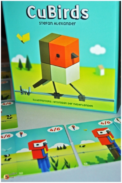Cubirds propose aux joueurs un jeu de pli très original et à la lecture des règles on dirait pas, mais c’est pas si évident que ça de bloquer les autres et de se servir correctement.