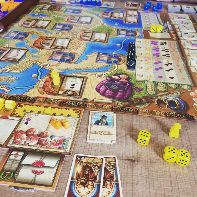 A chaque fois que j’y joue, je suis fan de ce jeu. Le placement d’ouvriers (des dés) reste ma mécanique préférée. Et Marco Polo se joue vite, on aimerait 2 manches supplémentaires, on est frustré, mais le jeu est réellement bon ! Je me fais avoir à chaque fois sur le départ en voyage, je prends jamais la bonne route, je me marre toute seule. Mais même en me trompant, et en faisant un sacré écart de points avec le gagnant, j’adore ce jeu et j’en redemande. Il est agréable, exigeant sans être punitif, très sympathique à jouer et les personnages de départ permettent de changer sa stratégie d’une partie à une autre. On reprochait au début que les personnages joués par les joueurs orientaient la stratégie, ben oui, comme dans beaucoup de jeu, la faction choisie a un pouvoir ; autant l’utiliser ! Ce n’est pas un reproche et ça ne devrait pas l’être. Marco Polo est un vrai plaisir à jouer. Surtout quand on prend la place de quelqu’un d’autre et qu’il doit payer pour venir s’y mettre hahaha c’est toute l’essence du jeu de placement d’ouvriers que j’adore !!!