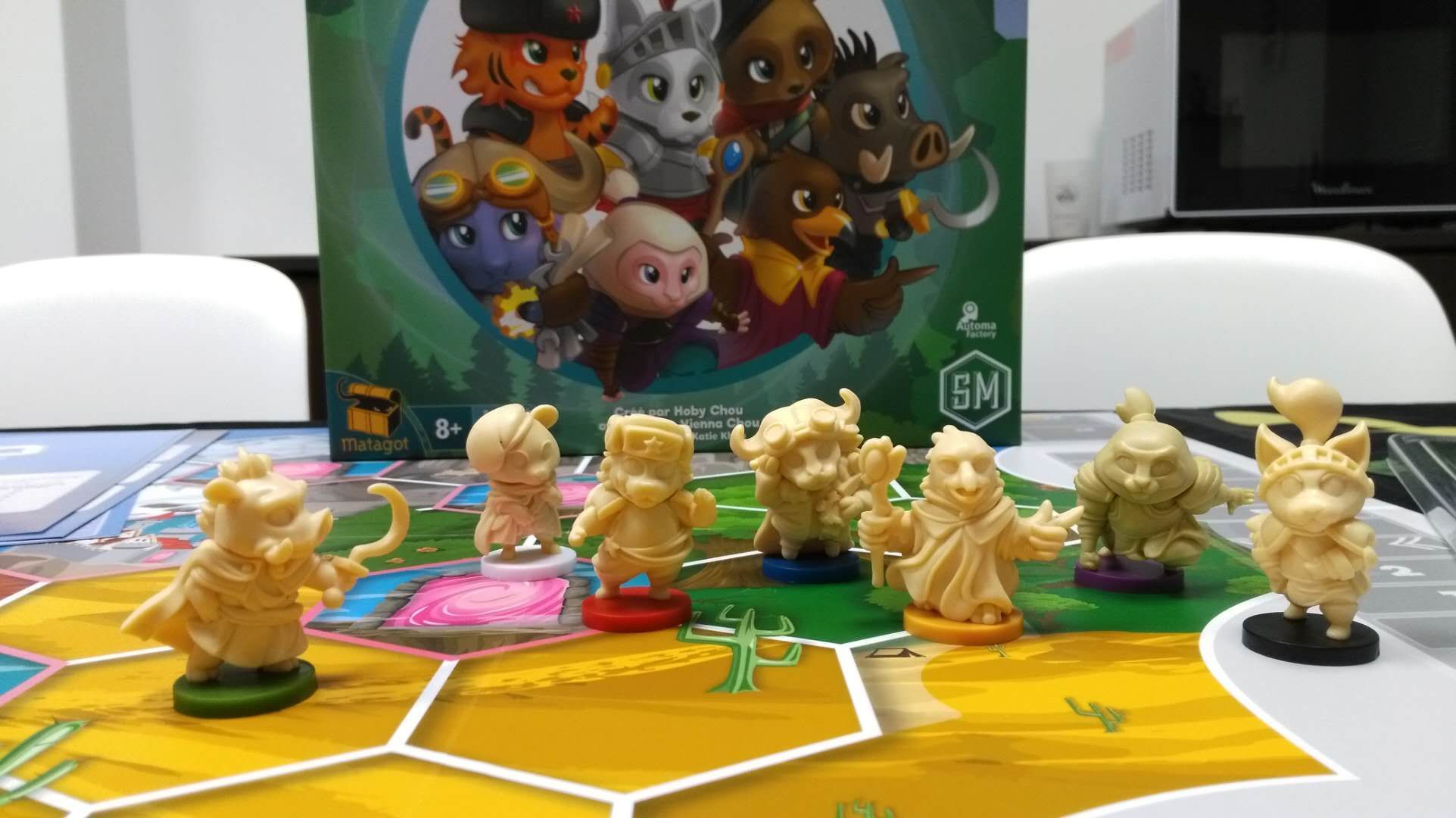 Inspiré de Scythe (lol), les joueurs vont contrôler 2 figurines et le premier ayant 4 trophées parmi 8 disponibles gagne la partie.