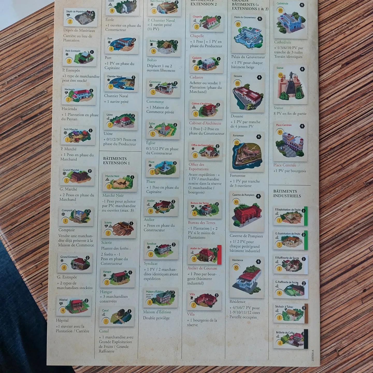 - Le Bâtisseur, qui permet d’acheter un bâtiment industriel (permettant d’exploiter ses plantations) ou offrant des avantages avec certains personnages. Chaque bâtiment rapportera des points de victoire en fin de partie. Le joueur choisissant ce rôle bénéficie d’une réduction de coût d’un peso.