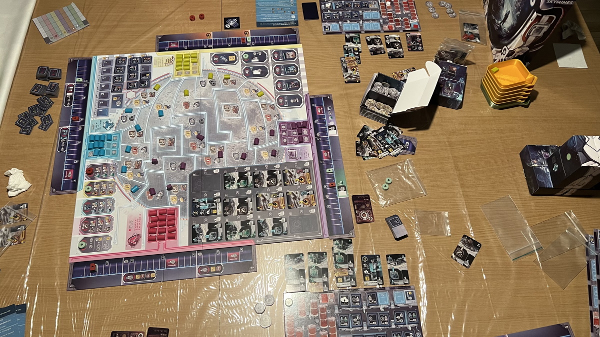 - Pfister revisite cette mécanique depuis plusieurs années. Et elle est plus efficace dans Blackout Hong Kong qui exploite, en plus, beaucoup mieux le thème. Dans la Team Sud, on aime énormément Blackout Hong Kong. Les cartes de « repos » doivent souvent rester en place pour espérer obtenir un objectif. Du coup, ça nous empêche de les récupérer alors qu’on voudrait les jouer. Dans Skymines, rien ne nous freine.