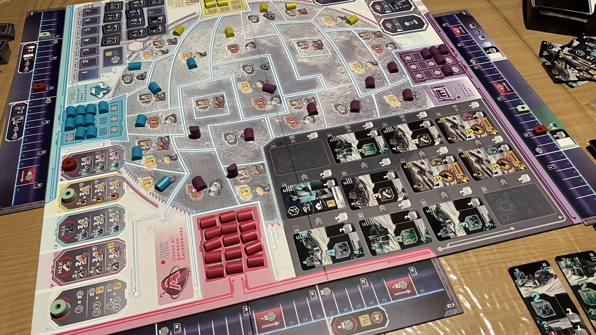 - Utiliser des points d’énergie pour développer une entreprise en plaçant des avant-postes sur de nouveaux secteurs sur la Lune, ce qui augmente la valeur des actions d’une entreprise et pas que.
