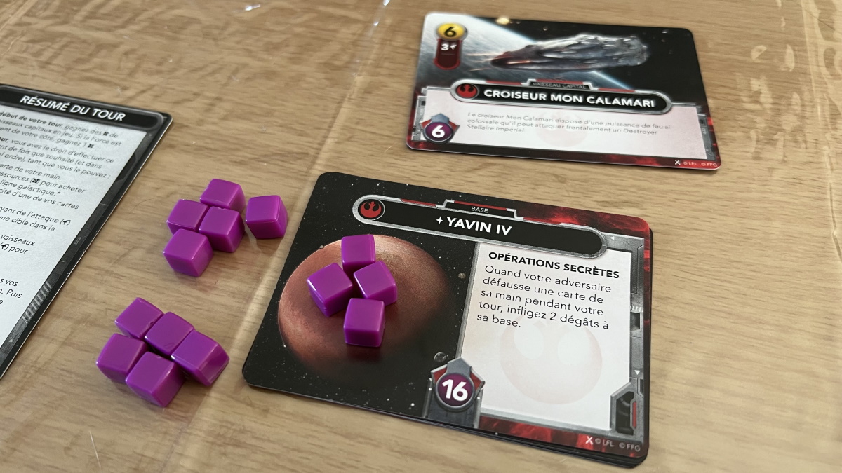 - La Force au début de la partie est côté Rebelles qui gagnent du coup à chaque tour une ressource (qui permet d’acheter des cartes) et en contre partie, c’est l’Empire qui démarre la partie.