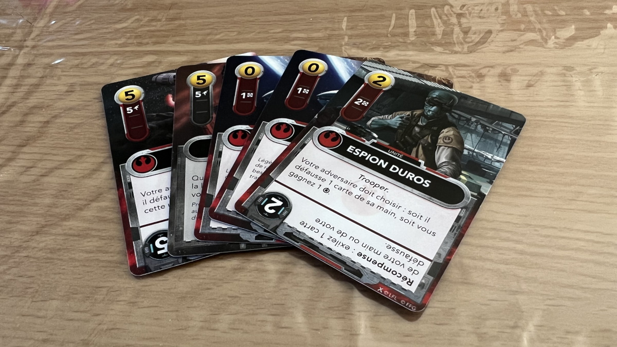 J’ai joué Les Rebelles, j’ai tout fait pour essayer de faire défausser l’adversaire et éviter les GROS dégâts mais j’ai perdu. Je ne connais pas les stats exactes, mais il y avait BEAUCOUP moins de cartes Rebelles dans la rivière que celles de l’Empire. Thématiquement, c’est logique… mais à jouer, c’est très dur pour le moral, comme à Star Wars Rebellion.