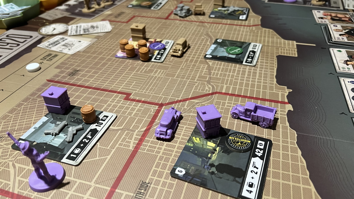 Le jeu porte le thème de façon remarquable et ainsi à chaque partie, on joue les mafieux et on aime ça, d’autant que la mécanique propose un ensemble de bonnes idées qui donnent au joueur la sensation d’être transporté dans le Chicago de 1920.