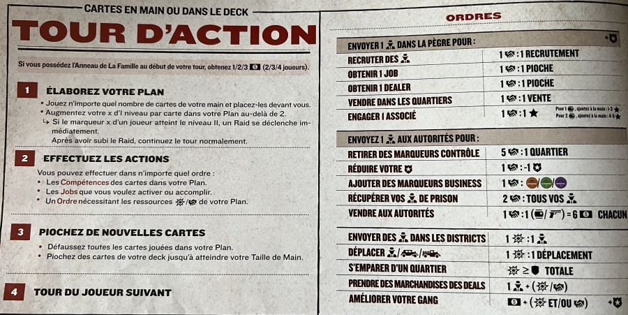 Sur les deux précédents types d’ordre (les autorités et la pègre), on a besoin d’influence. On le voit très bien sur l’aide de jeu : l’influence permet de faire deux tiers des actions.