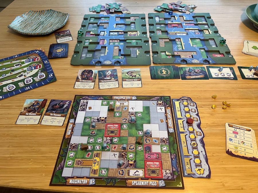 Wild Tiled West est divisé en quatre « années ». Chaque année, vous gagnez des revenus grâce à vos mines d’or, puis vous passez plusieurs tours à construire votre village en plaçant des tuiles. À la fin de chaque année, celui qui a le plus de bandits perdra des points et celui qui a le moins de bandit en gagnera.