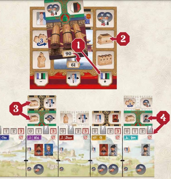 - Progrès : les civilisations (les pions joueurs) avancent sur la piste dédiée