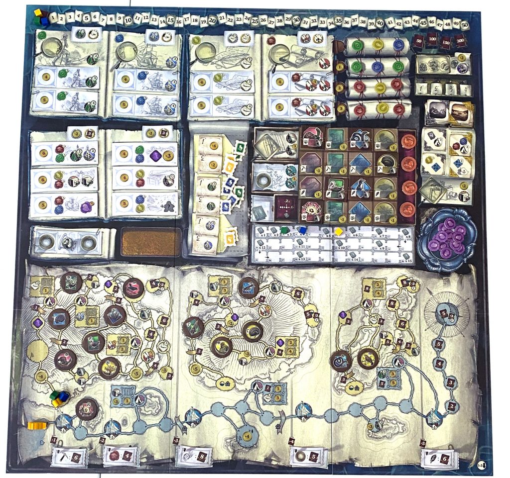 Lors de ma première partie, j’ai trouvé le jeu ardu. Il y avait des choses très compliquées à atteindre, les cachets de cire étaient très bloquants. Puis, je me suis rendue compte que c’était principalement dû à la mise en place conseillée pour une première partie.