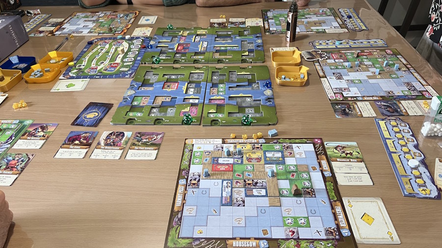 On termine cet Essen sur ce jeu initié (Wild Tiled West) qui a fait forte impression à tous les joueurs et je vous fais part maintenant de nos parties jouées avant le Essen à la maison. Partie à 3 de Expeditions avec Stef et Angé qui viennent d’ajouter leur avis) et des parties jouées à deux avec Gégé :
