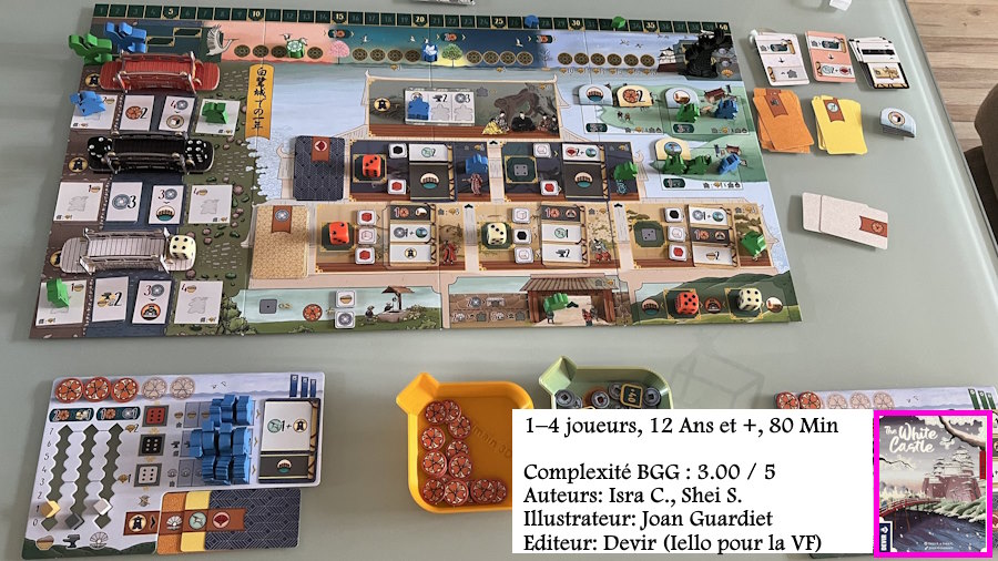 Il n’empêche que ce jeu mérite votre attention car il ne ressemble à aucun autre. A votre tour, vous choisissez un dé (parmi 3 si vous êtes le 1er joueur, parmi 2 sinon) et vous faites l’une des actions qu’il propose et vous espérez que son chiffre corresponde à un ou plusieurs de vos terrains pour les remplir avec qq meeples. Evidemment ce n’est pas aussi simple que cela, j’abrège. Un brise neurone exceptionnel pour moi.