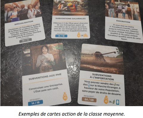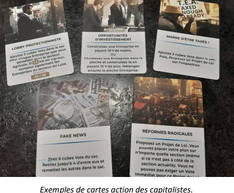 Très vite vous allez saisir les enjeux de votre classe et jouer à fond votre rôle. Nous avions un joueur qui a pris les capitalistes et qui dans la vraie vie est plutôt très, très mais alors très à gauche. Mais le jeu l’emporte sur tout. Et vite ce joueur s’est transformé en un affreux rapace économique, n’hésitant pas à atomiser ses entreprises, sacrifier son personnel, faire pression sur l’état et les politiciens !!! On se prend très vite au jeu.