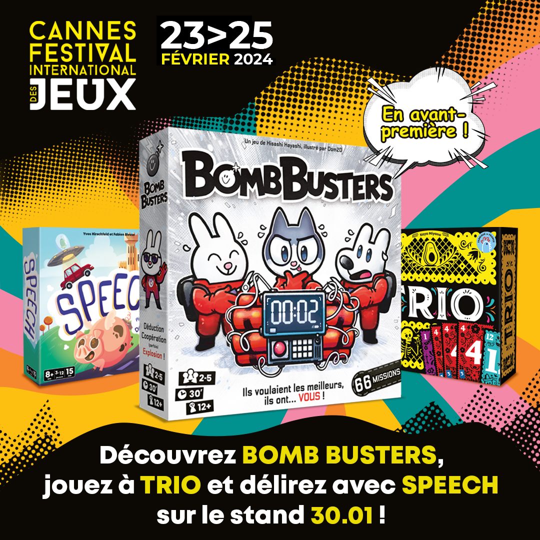 • en avant-première le jeu BOMB BUSTERS (un jeu d’Hisashi Hayashi, illustré par Dom2D),