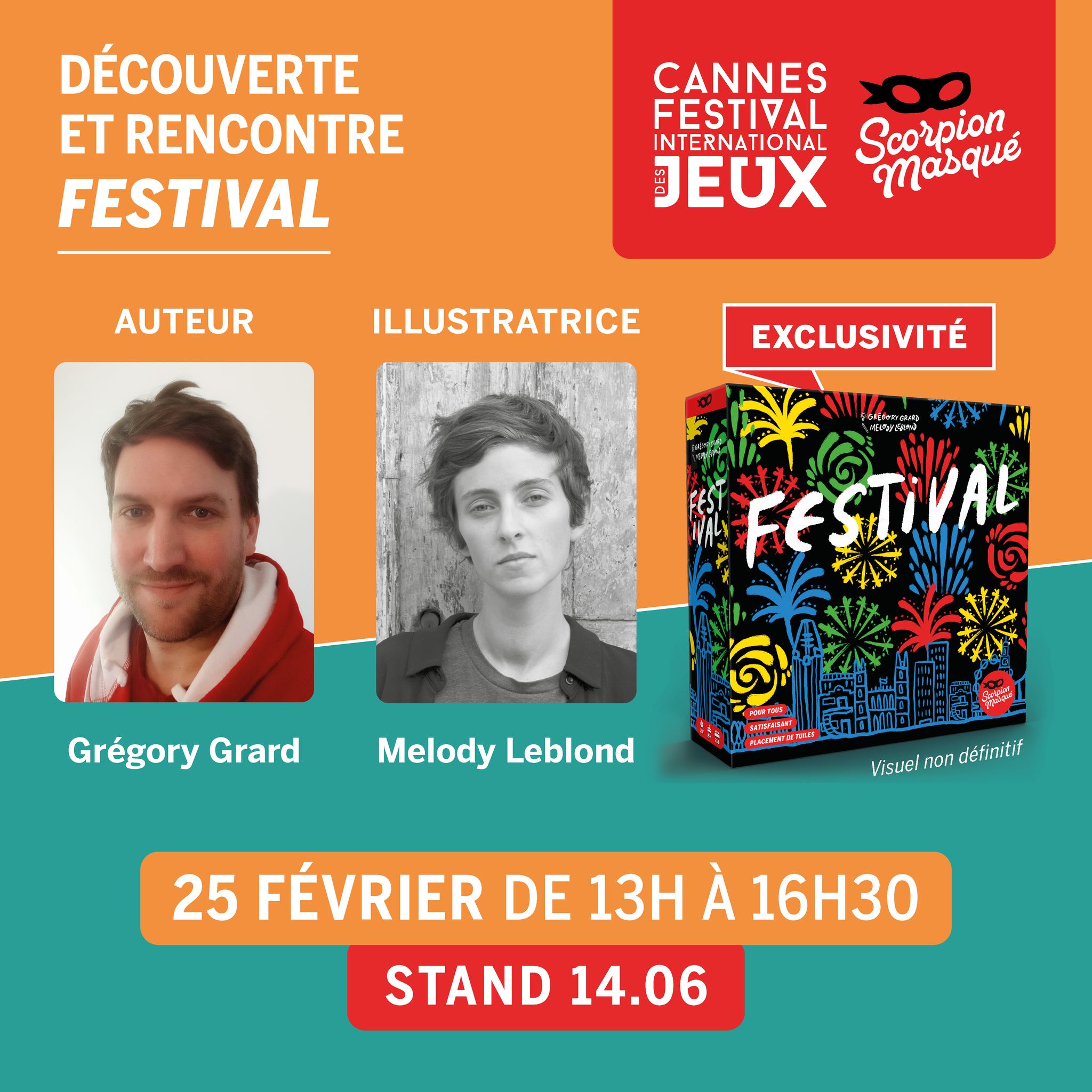 • Festival, un jeu de placement et d’empilement de tuiles, en exclusivité et en présence de nos artificiers Grégory Grard et Melody Leblond, le dimanche, de 13h à 16h30