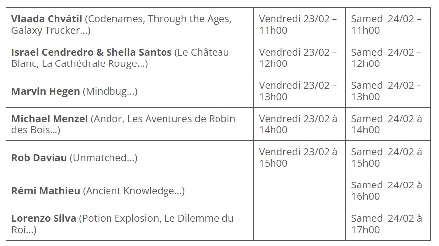 Vous pourrez également rencontrer pas moins 5 auteurs de jeu sur notre stand tout au long du festival