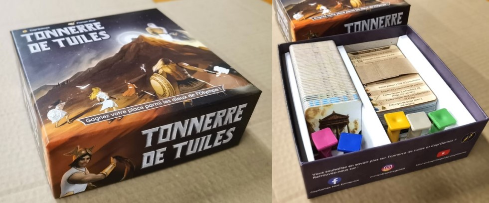 Nous sommes 15 collégiens et nous avons créé un jeu de société qu’on vient d’éditer à 1000 exemplaires. Tonnerre de Tuiles est un jeu de société de course et de double guessing jouable de 2 à 6 joueurs dès 8 ans, pour des parties en famille ou entre amis de 30 minutes environ. Ce jeu se passe dans l’univers de la mythologie grecque. Tous les coups sont permis pour être le premier à arrivé au sommet du mont Olympe ! Notre jeu a des particularités : c’est un jeu de tuiles avec des effets de cartes et, sur la route, les joueurs peuvent être aidés par des dieux qui représentent de manière imagée un handicap qui donne des pouvoirs ! On a revisité la mythologie pour ça.