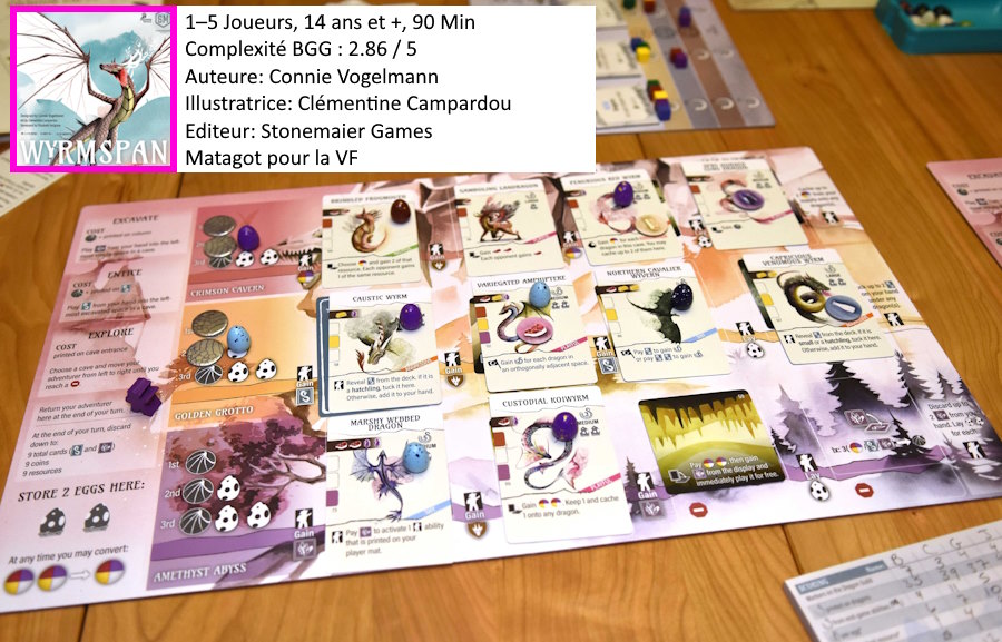 Hypée depuis que Stonemaier Games en a parlé. Hypée encore plus quand j’ai vu les différences entre Wingspan et Wyrmspan dans une vidéo de Matagot.
