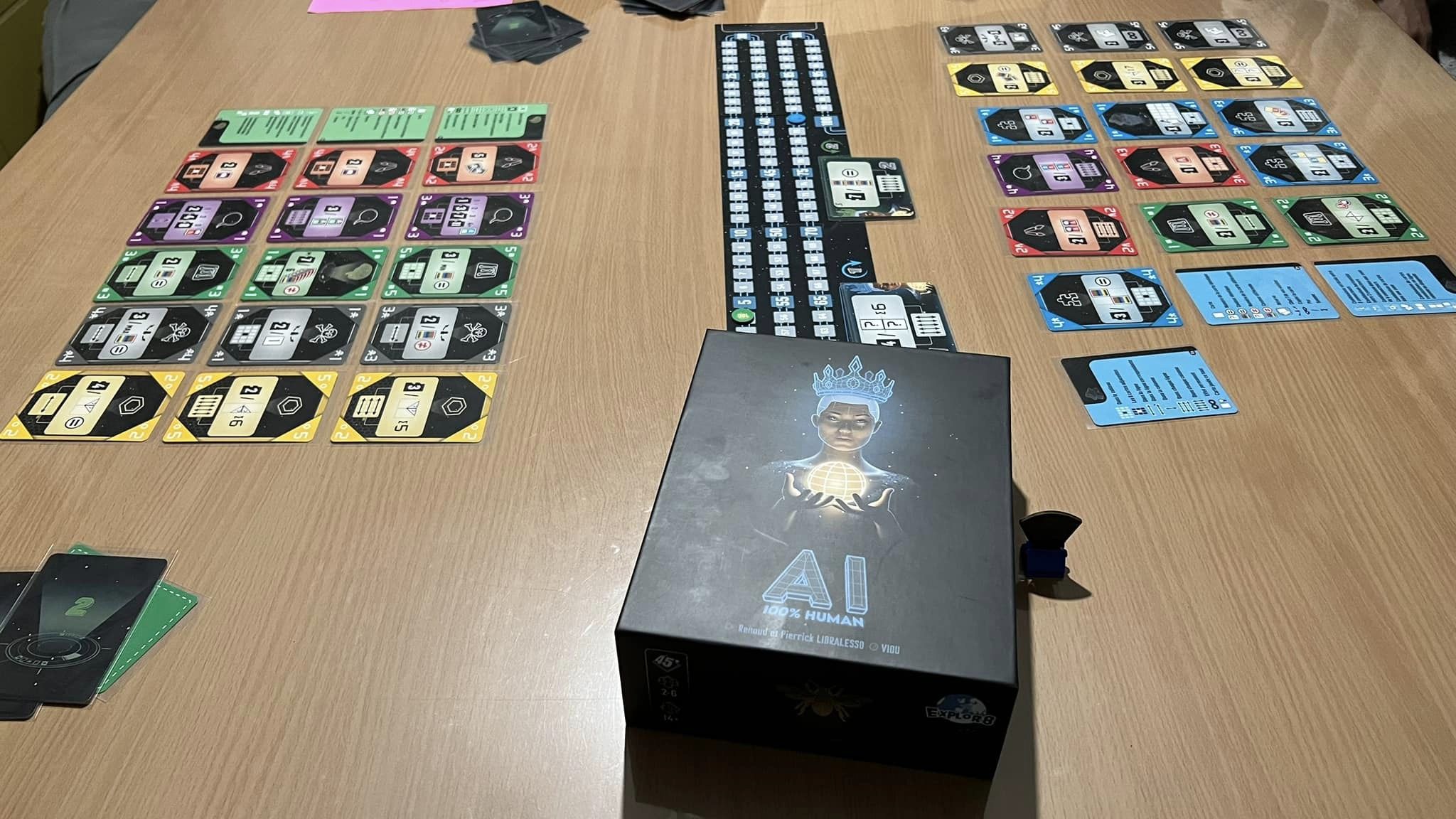 Alors que tout le monde était à Cannes et que mon week-end a été annulé, je errai souvent entre les lives de Un Monde de Jeux et les posts Facebook des joueurs ou professionnels. Et s’il y a bien quelque chose qui a adoucit ce sentiment de solitude immense (alors que je suis à Cannes presque chaque année depuis 2014), c’est la réception du prototype de AI 100% Human, offert par Explor8. Je crois que c’est la première fois dans ma vie ludique que je suis reconnaissante. En plus, Explor8 a besoin des boites de AI, il faut le faire tourner le plus possible jusqu’à ce que la campagne KS soit terminée et moi j’en ai une. Merci. Vraiment.