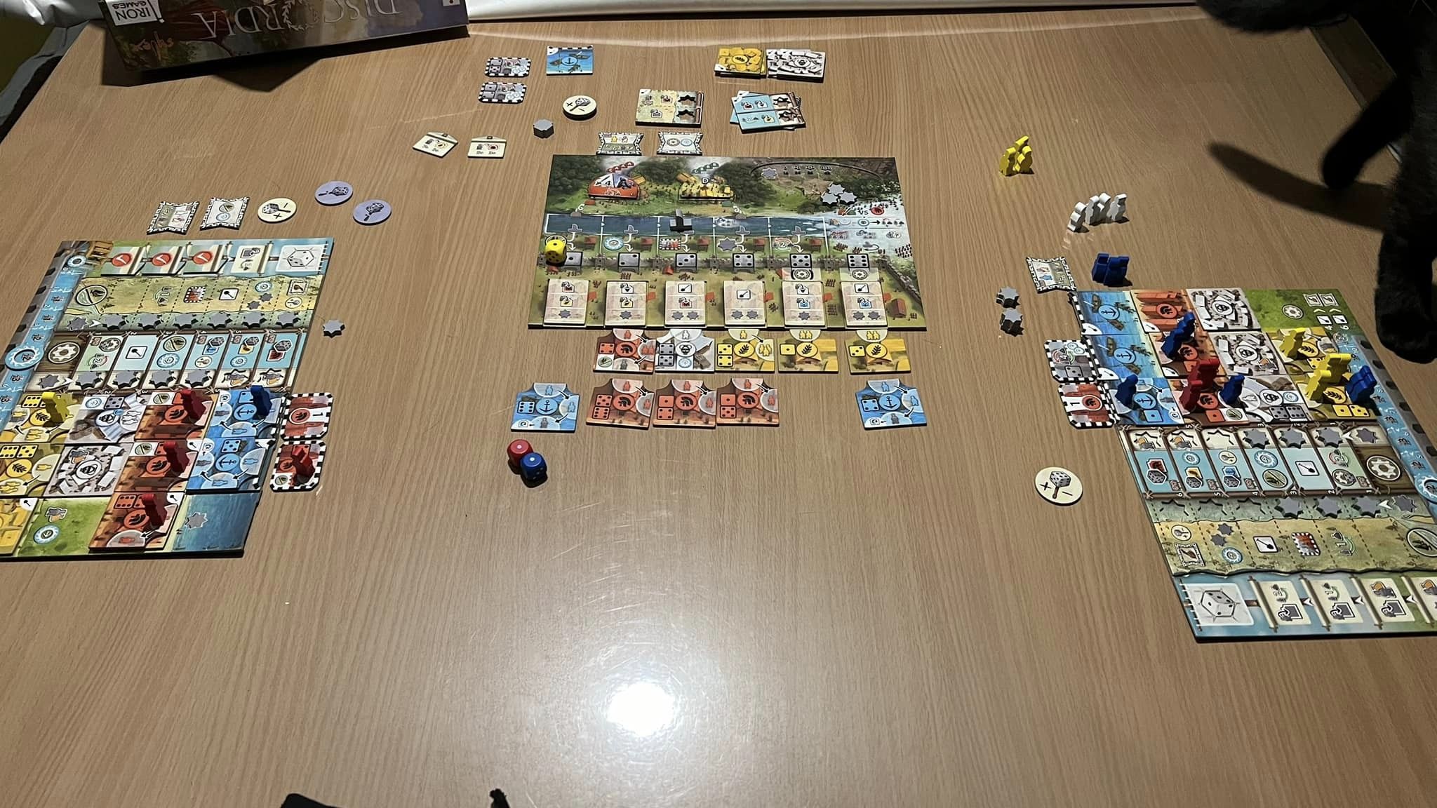 Je trouve que ce jeu ne ressemble à aucun autre, son originalité est telle que c’est un must have dans toute ludothèque digne de ce nom. Discordia n’est peut-être pas beau mais mécaniquement, il est épuré et soigné donc parfait. Et pourtant, c’est du draft de dé mais il ne se limite pas à ça car les actions liées au dé permettent de faire de nombreuses choses mais on ne pourra en choisir qu’une à son tour. Torture !!!
