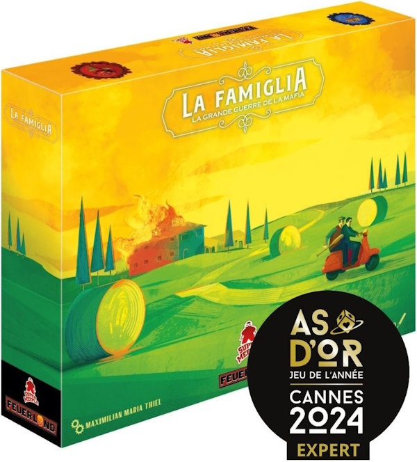 Je n’ai pas encore pu le sortir à 4 et je ne rêve que de ça ! J’y pense très très souvent à ce jeu car je lui trouve des similitudes avec Le Trône de fer (joué ce we mais j’en parlerai dans les jeux de Mars). Par contre, La Famiglia semble un peu plus euro game, ce qui devrait plaire à mon groupe. Du coup, forcément ça fait envie et son As d’Or Expert confirme déjà tout le bien que j’en pense (alors oui sur la base des règles, des vidéos de règles, des vidéos de parties, j’en regarde beaucoup sur ce jeu).