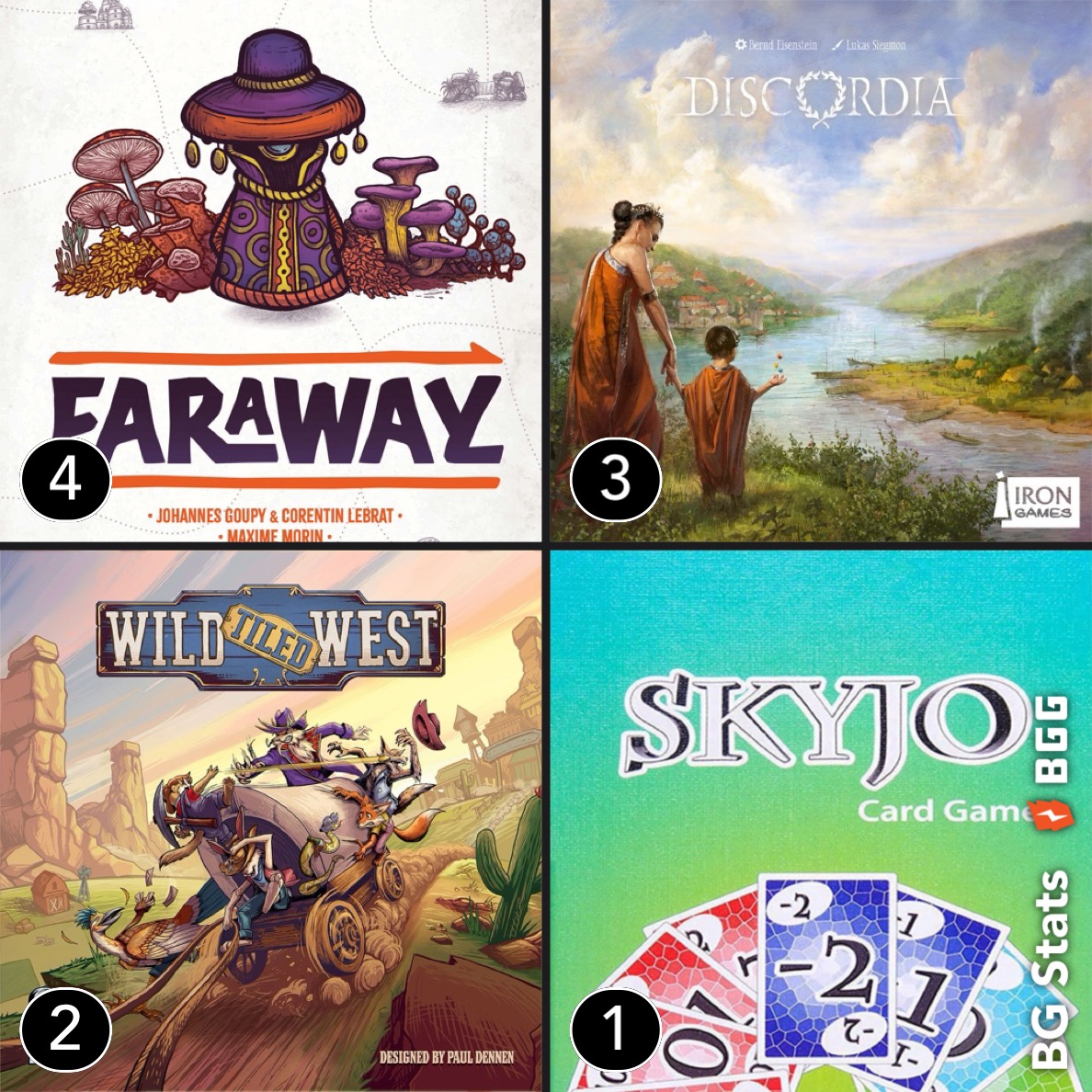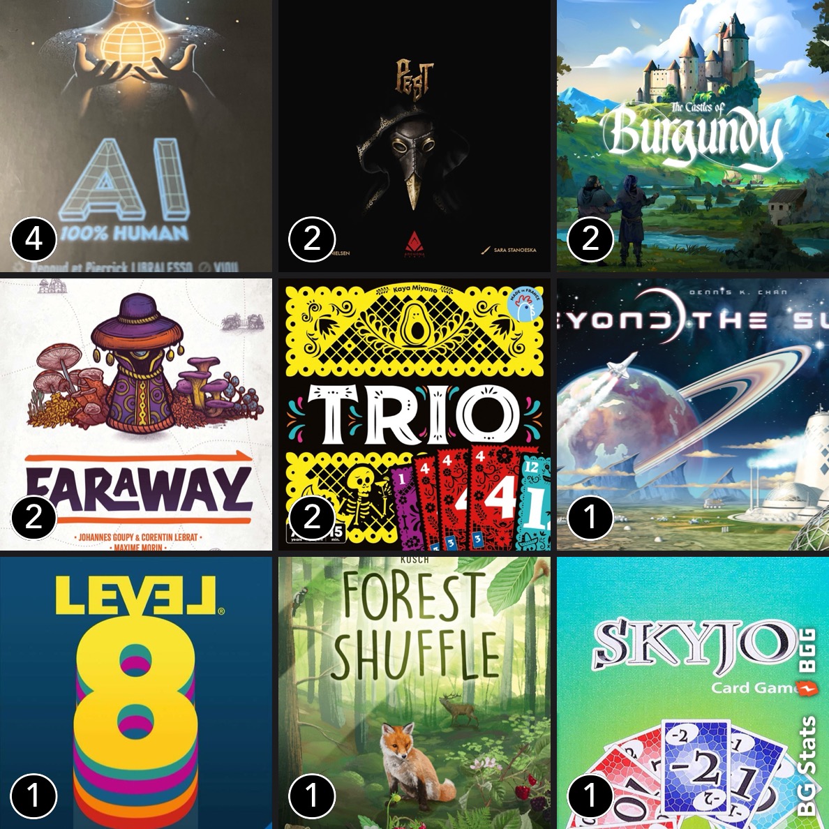 Peu de jeux mais quelques parties de ceux là, signe qu’ils nous plaisent beaucoup.