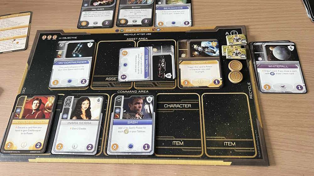 J’ai découvert tardivement la série Firefly et je ne vous cache pas que j’ai fait une fixation sur elle pendant de longues semaines tellement j’ai aimé l’ambiance. Ne pouvant pas m’offrir la version 10ème anniversaire du jeu de plateau éponyme, je me suis rabattue sur le jeu de deck building dans le même univers.