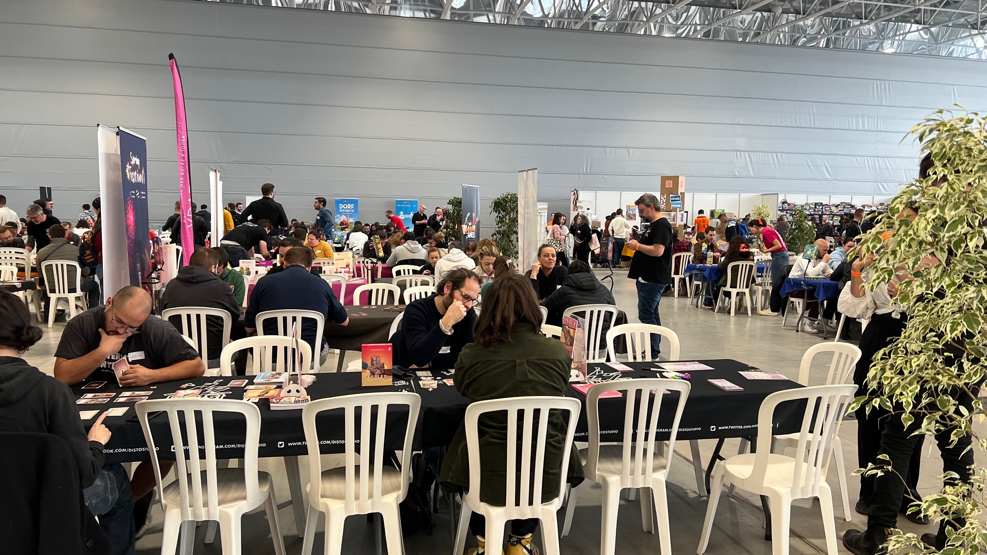 - Jeux invisibles (remarque pour les éditeurs): Il m’a manqué les stands que l’on peut admirer à Cannes et PEL parce qu’une ribambelle de tables sans identité (malgré les nappes) ne permet pas ou peu de repérer les jeux. Une présence plus forte des éditeurs est demandée/suppliée pour l’an prochain.