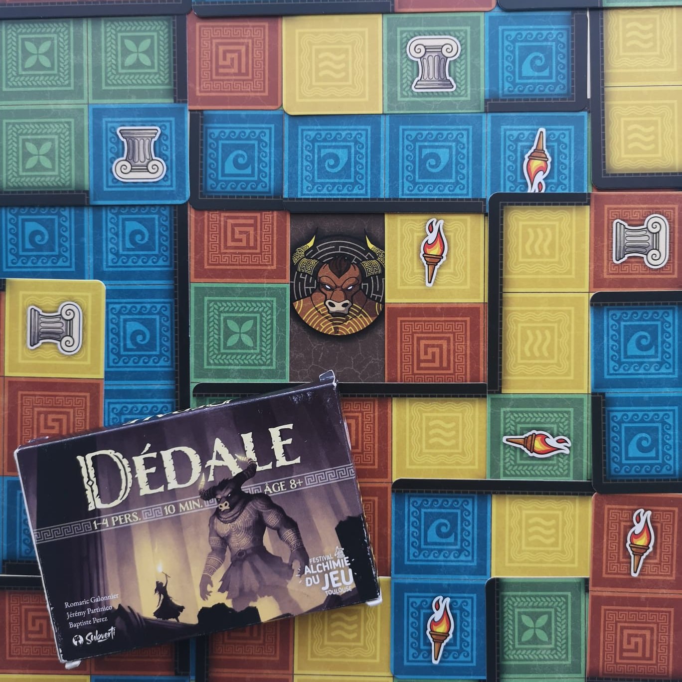On a discuté du festival, de l’avant / après covid, il m’a aussi montré Dédale, édité par le festival et Subverti. Moi qui me repère pas dans l’espace, il a du bien rigoler 🙂 Mais foncez sur ce petit jeu très malin!!