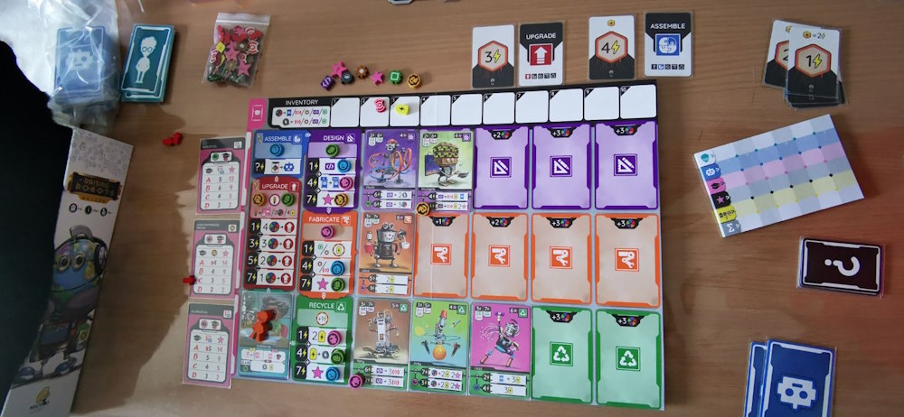 J’adore les illustrations et le thème. Même s’il faut admettre que mécaniquement on n’a pas l’impression d’assembler des robots, on est plutôt dans de la récolte et échange de ressources pour les dépenser afin de construire nos robots.