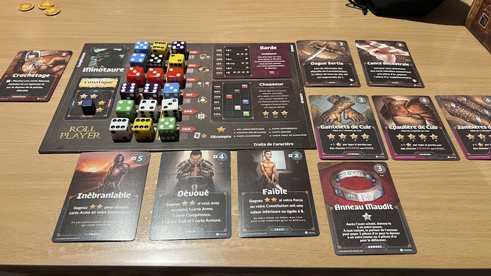 Quand les collègues m’ont parlé de Sagrada, je leur ai proposé de leur faire découvrir Roll Player. Nous avons joué au jeu de base sans les extensions. Et j’y ai retrouvé le même plaisir qu’il y a (trop) longtemps (cause nouveautés).